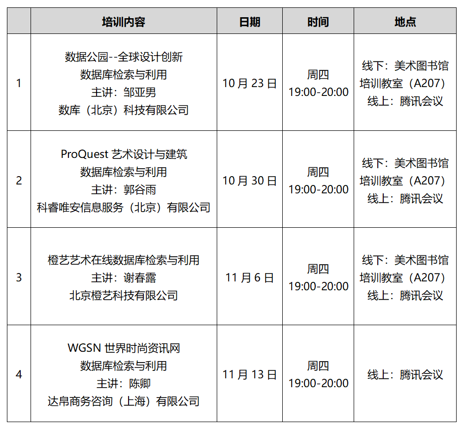 美术图书馆2025年秋季学期艺术类数据库检索与利用系列培训日程