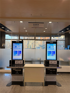 位于F1层总服务台东侧。支持IC卡刷卡和“脸识别”办理借书、续借及账户查询。