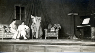 1927年,赵元任将英国作家米尔恩的《坎伯利的三角恋爱》改编,用白话口语翻译,改成剧本《最后五分钟》。图为《最后五分钟》在清华演出剧照(1927年)。
