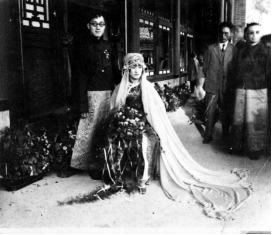 1926年10月3日,徐志摩(左一)与陆小曼(左二)在北海公园举行婚礼。梁启超担任证婚人,赵元任夫妇与陈寅恪一同进城参加婚礼,并为新人拍照。1927年7月,赵元任为徐志摩诗歌《海韵》谱曲。