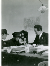 1935年12月至1936年5月,赵元任先后赴湖北钟祥进行方言调查,完成《钟祥方言记》,并与杨时逢、丁声树、吴宗济三位助理到湖北调查方言,记录64地的方言与故事。图为赵元任(右一)核对湖北人发音(1936年5月)。