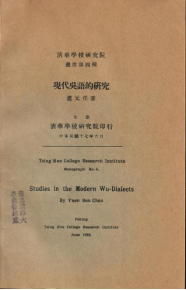 《现代吴语的研究》是中国第一部用现代语言学方法研究汉语方言的学术著作。最早由清华学校研究院印行,并于1928年由科学出版社出版。1927年,赵元任主持中国首次现代语言学方法的汉语方言调查,本书就是这次方言调查的最终成果。调查期间首次使用国际音标记音法、系统的表格调查法等科学调查手段,使得调查更加精确且规范化,在语言学学术史上具有重要地位。本书提出吴语保留古汉语的浊塞音([b][d][g]),至今仍是方言学者区分吴语语音的重要标准之一,例如苏州话中“皮”的声母既不同于普通话声母p,也不同于b,而是更加浑厚低沉的浊音[b],发音时声带持续振动。
