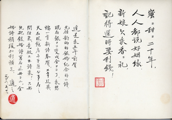 1946年5月28日,胡适为庆祝赵元任夫妇银婚的贺诗与贺词。