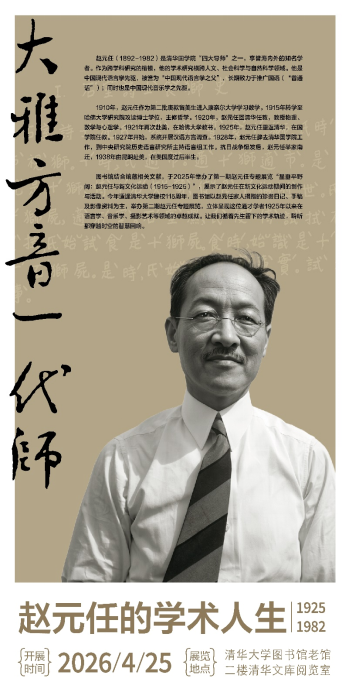 图书馆结合馆藏相关文献,于2025年举办了第一期赵元任专题展览“星垂平野阔:赵元任与新文化运动(1915-1925)”,展示了赵元任在新文化运动期间的创作与活动。今年适逢清华大学建校115周年,图书馆以赵元任家人捐赠的珍贵日记、手稿及影像资料为主,举办第二期赵元任专题展览,立体呈现这位通才学者1925年以来在语言学、音乐学、摄影艺术等领域的卓越成就。让我们循着先生留下的学术轨迹,聆听那穿越时空的智慧回响。