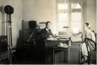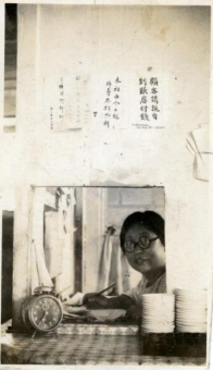 1927年,赵元任夫人杨步伟聘请五芳斋厨师,在清华园大门前右方、南院对面的小河边开起饭店“小桥食社”,一时风靡清华园。图为杨步伟在记账。