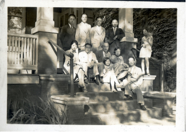 1937年“七七事变”后,校长梅贻琦,教授庄前鼎、胡适等人赴庐山参加蒋介石召开的各界人士关于国是问题谈话会。图为赵元任在南京迎接开会回来的梅贻琦等人。