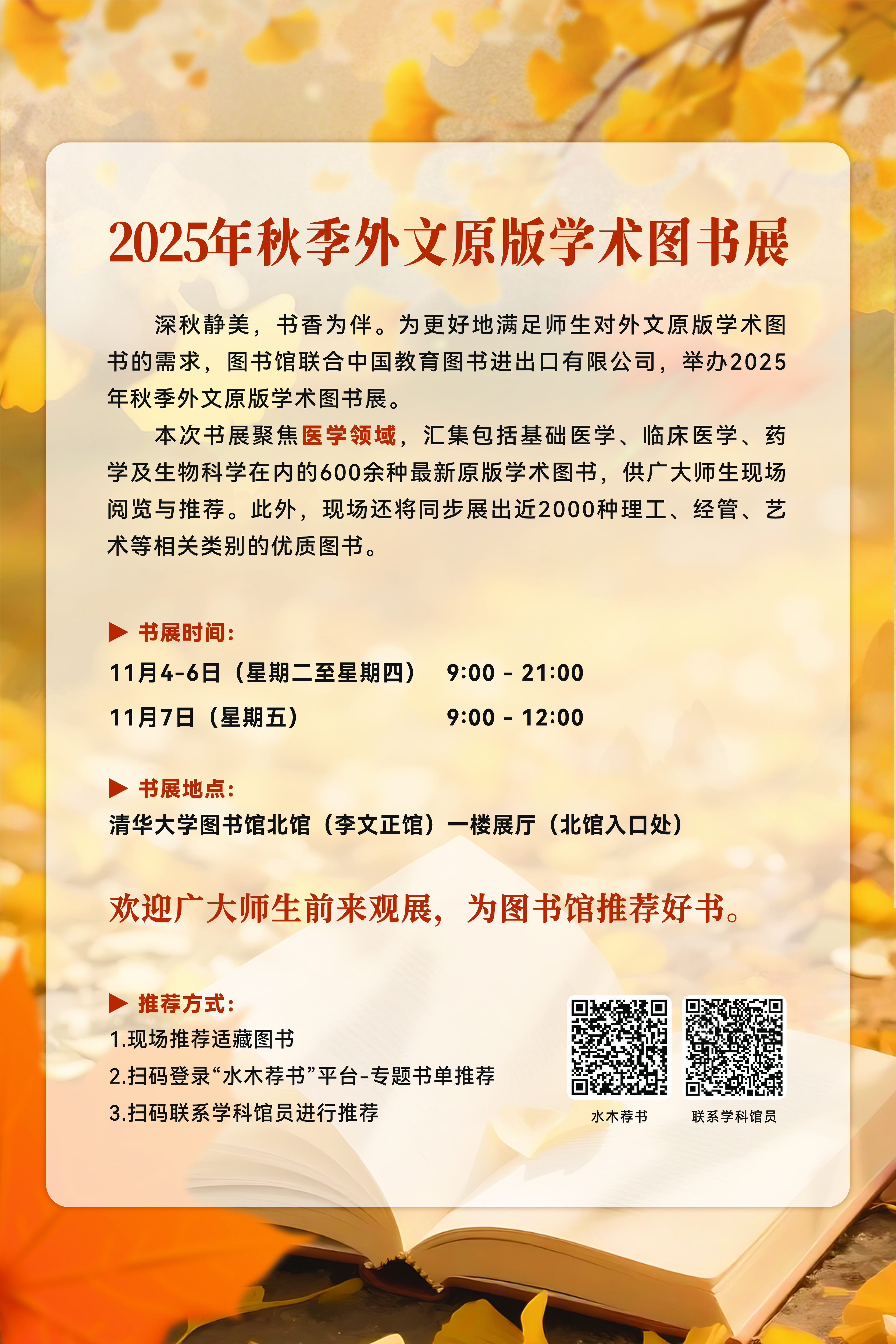 欢迎广大师生前来观展,为图书馆推荐好书。