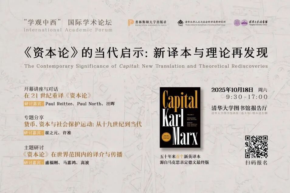 “学观中西”国际学术论坛是由清华大学图书馆与普林斯顿大学出版社中国办公室共同发起的研讨对话系列活动,旨在以经典书籍为媒介,汇聚海内外顶尖学者,围绕全球共同关注的议题展开跨学科、跨文明的深度交流,构建中西方学者对话平台。论坛首场活动聚焦于2024年9月由普林斯顿大学出版社出版的《资本论》新英译本,这是50年来第一部基于马克思本人修订的德文版本的全新英译本,具有重要的学术价值。