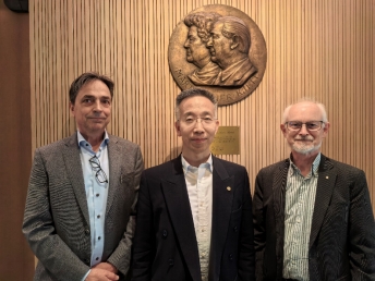 金兼斌与两位召集人Dan Larhammar(右)和Bernhard Sabel合影